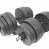 Комплектация:Грифы:2 грифа длиной по 45 см;на каждом грифе по 2 втулки.Диски (композитные):Диаметр, мм - 264*5+8*1,25